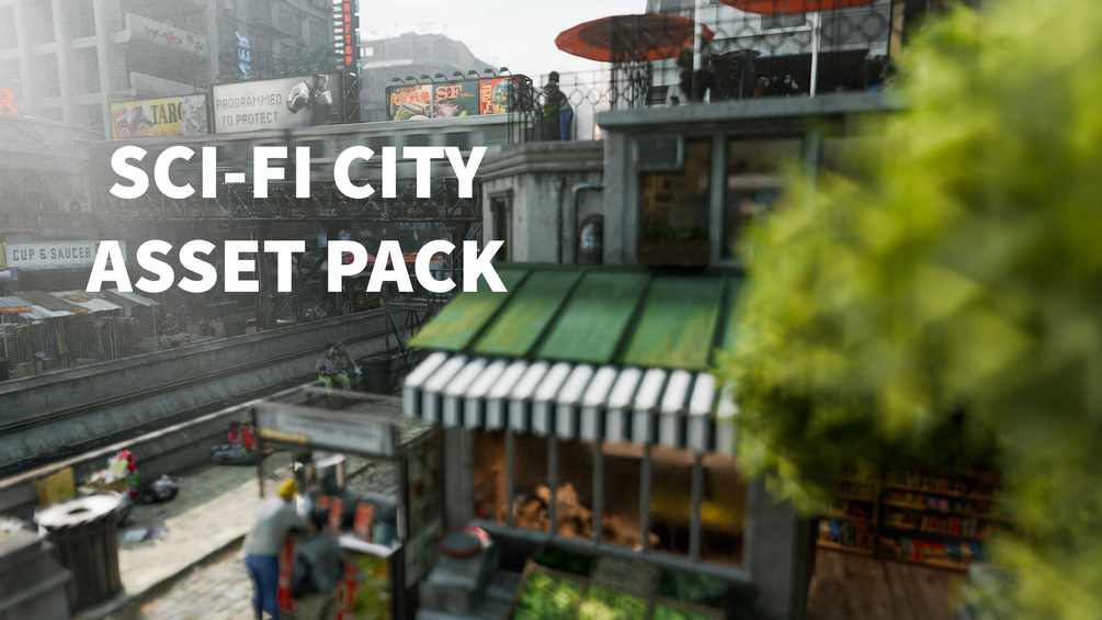 150 + total props including sci-fi buildings, containers, food and foodstuff, stores, market stalls, and more!